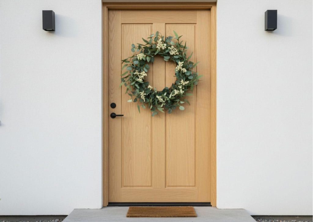 How you hang your wreath matters as much as the design itself. Use a strong hook or ribbon to ensure it sits securely on your door. Eye-level placement is ideal because it becomes a focal point and naturally welcomes guests. Make sure the wreath faces outward nicely and isn’t crowded by other decorations. A simple adjustment in placement can make even a small, simple wreath look professionally styled.