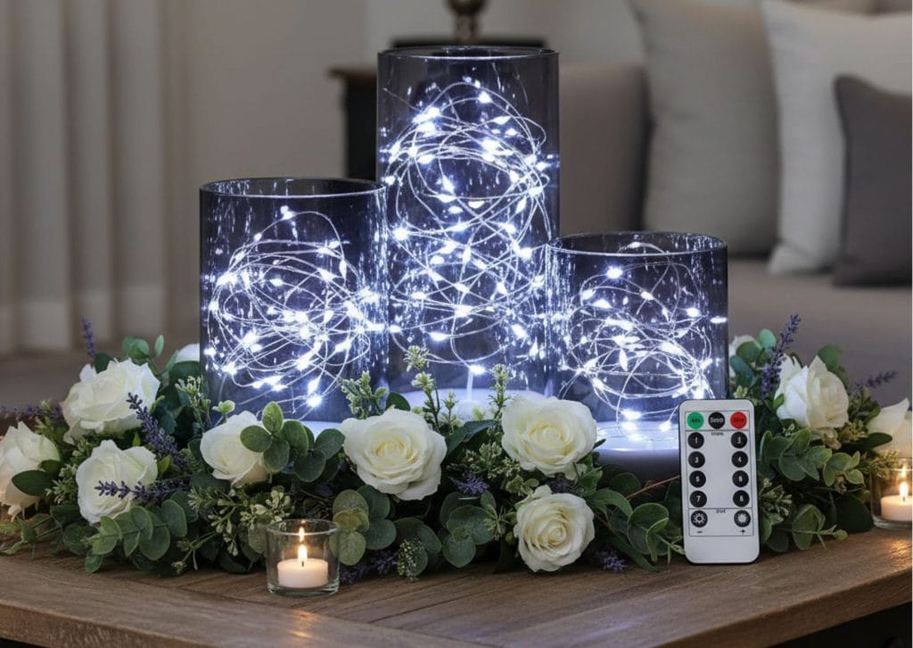 Nothing makes a wedding table feel warm and inviting like a beautiful centerpiece. Pair flameless candles with flowers, greenery, or simple vases to create an elegant glow. The soft light instantly lifts the table’s look, and it’s completely safe—no fire, no fuss. Guests will notice the cozy, romantic touch right away.